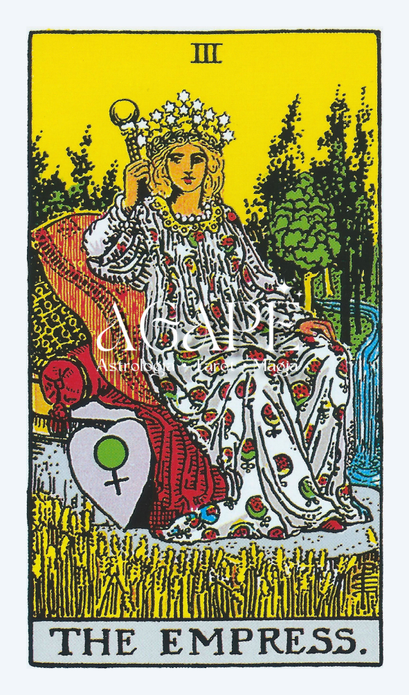 En el Tarot Rider Waite, el arcano mayor La Emperatriz es el número 3 de la baraja y representa la belleza, la abundancia, la alegría, la fertilidad, la nobleza del alma, la bondad, las virtudes y en general, todas las leyes naturales universales. Está asociada al planeta Venus y a los signos zodiacales Tauro y Libra